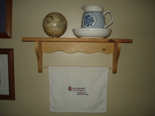 We were so impacted by this we decided we wanted to display this towel for our benefit. My husband bought the shelf and added rod for the towel to hang on. I knew I wanted something special for the shelf and wanted it to represent what we had seen during that special service. I also love the look of antiques so I was going to be very picky about what would reside on that shelf!