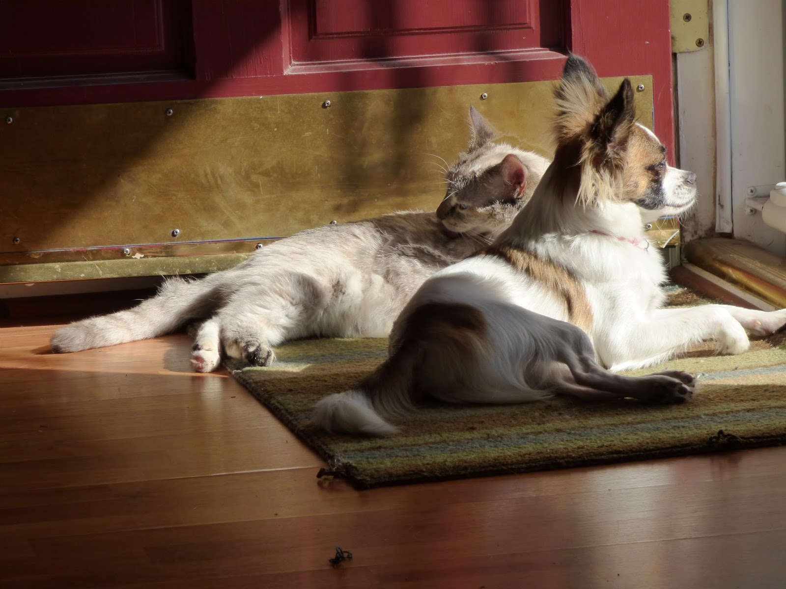 Here are our sweet pets! Lucy and Penny love laying in the sunshine when I open the front door on these cold days. We live in the south, so I know cold is very much relative!