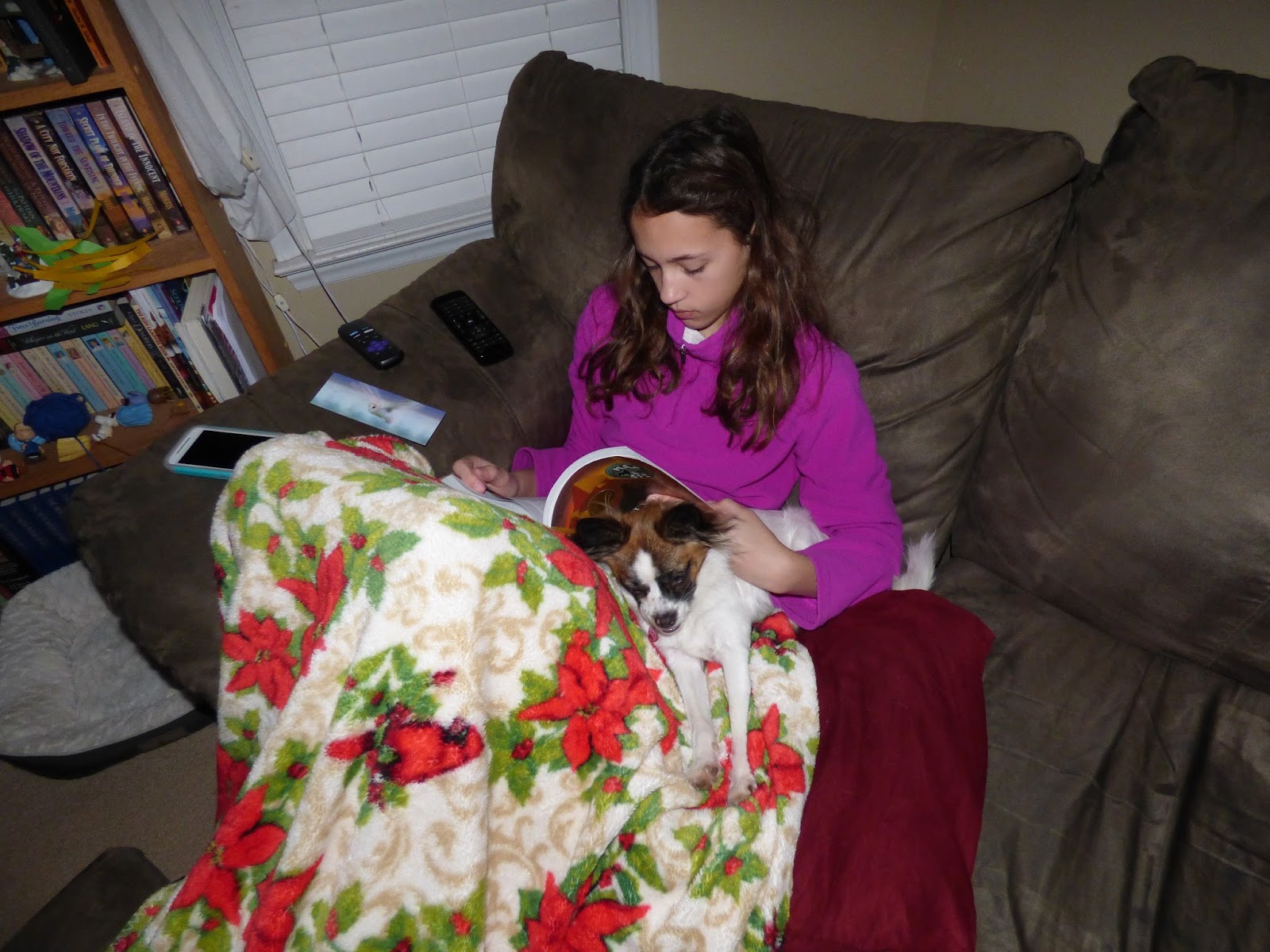 Our pup Penny loves to cuddle with the girls while they read for school. Usually they read literature and history assignments in the living room or their bedroom and Penny quickly follows when she sees a book in hand! Rose is enjoying the Mr. Pipes book she is reading in this guide. She says the one thing she loves about our history studies is how all the reading is connected and she gets to read lots of different books about the same time in history. This is just one more reason I’m grateful for Heart of Dakota and all the time the author put into researching and finding these great gems of literature!