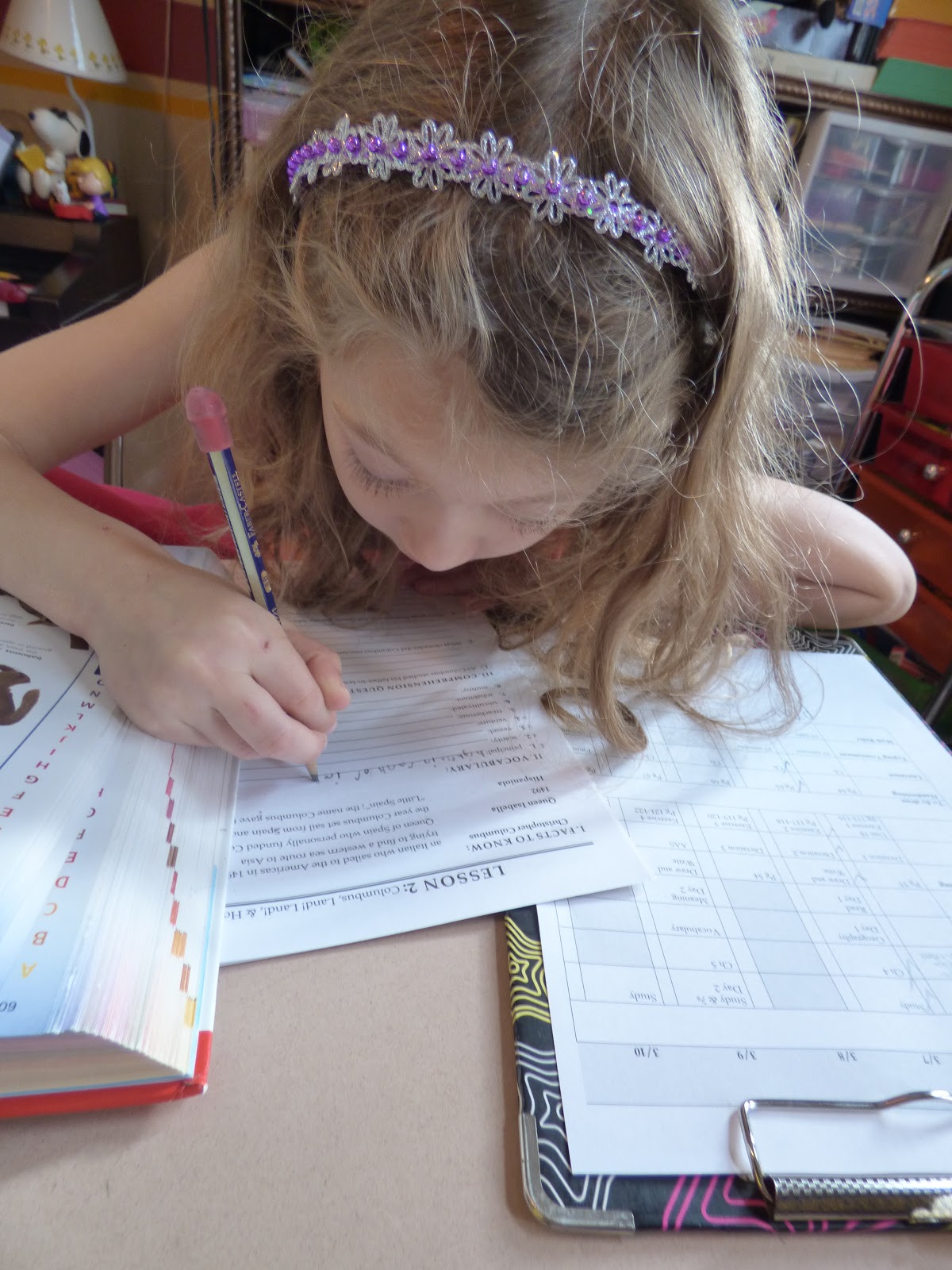 I think Rose was working on her writing with Writing Strands in this picture. She loves sitting by the front door while working because our puppy likes the sun and they enjoy one anther’s company. Writing strands is such a great program! It’s simple to follow and very content rich. Rose has always loved to write and writing strands is helping her really hone her skills.