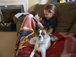 I think Rose was working on her writing with Writing Strands in this picture. She loves sitting by the front door while working because our puppy likes the sun and they enjoy one anther’s company. Writing strands is such a great program! It’s simple to follow and very content rich. Rose has always loved to write and writing strands is helping her really hone her skills.