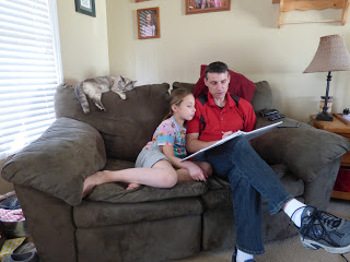Math was with Daddy (And Lucy the cat!) this afternoon! She had already completed the work earlier in the day buy my husband was nice enough to go over her work with her when he came home at lunch. I’m so blessed that he is willing to jump in and help out anytime he can!