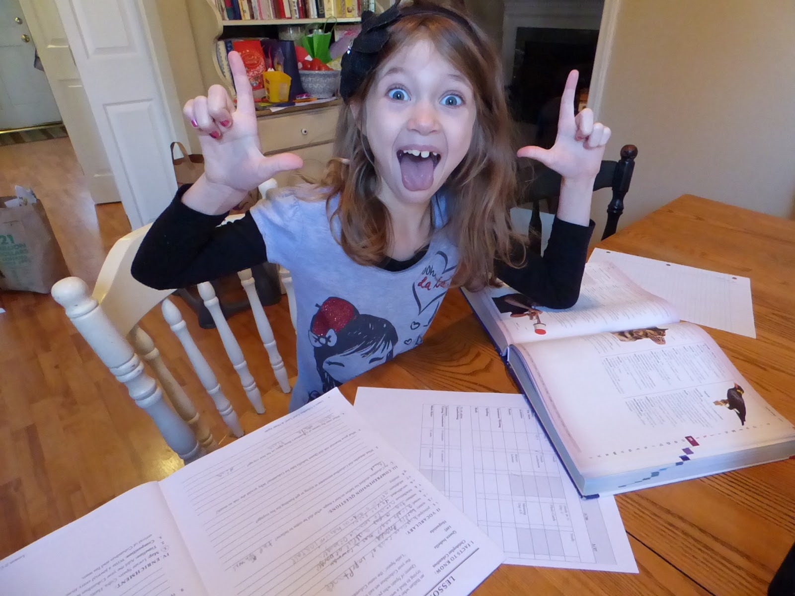 Here is my fun-loving girl! She’s so diligent with her studies, but this doesn’t stop her from having fun! She continues to love looking up words in the dictionary, loves to complete her math, and loves to read. I asked her this week if there was anything we did in school she didn’t love. She thought for a minute and said handwriting because it takes too long! This is exactly her personality, she’s always on the move and wants to go a quickly as possible! We do sometimes have to go back and fix things, but for the most part even in her desire to move fast she does very well with school!