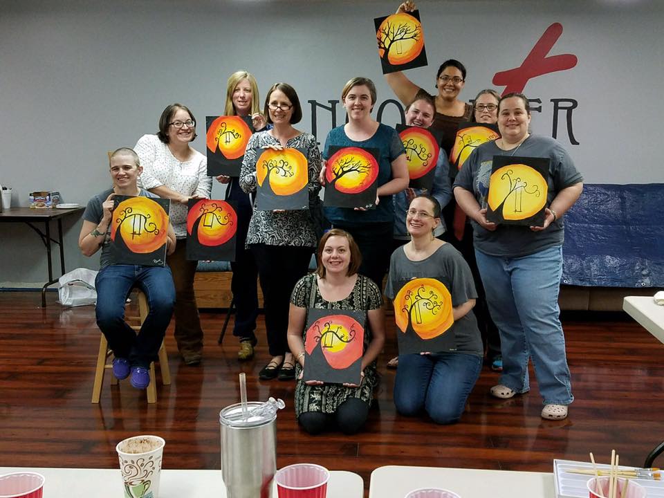 For the last several years I’ve lead a moms group at our church. It’s been a wonderful ministry, but this year I’m stepping down from leading. I planned a fun painting night for us for our last meeting. We had a great time and made some wonderful memories as well as art!