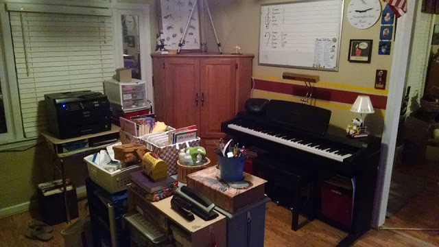What a week! It has been anything but relaxing, but still really great! Daily school occurred and the girls continued reading their chosen literature book, chosen biography, and daily math assignments. We also spent some more time at the pool with friends and relaxed. Sadly, I have no pictures of this. What I DO have pictures of is our homeschool room/music room makeover!