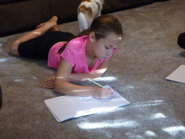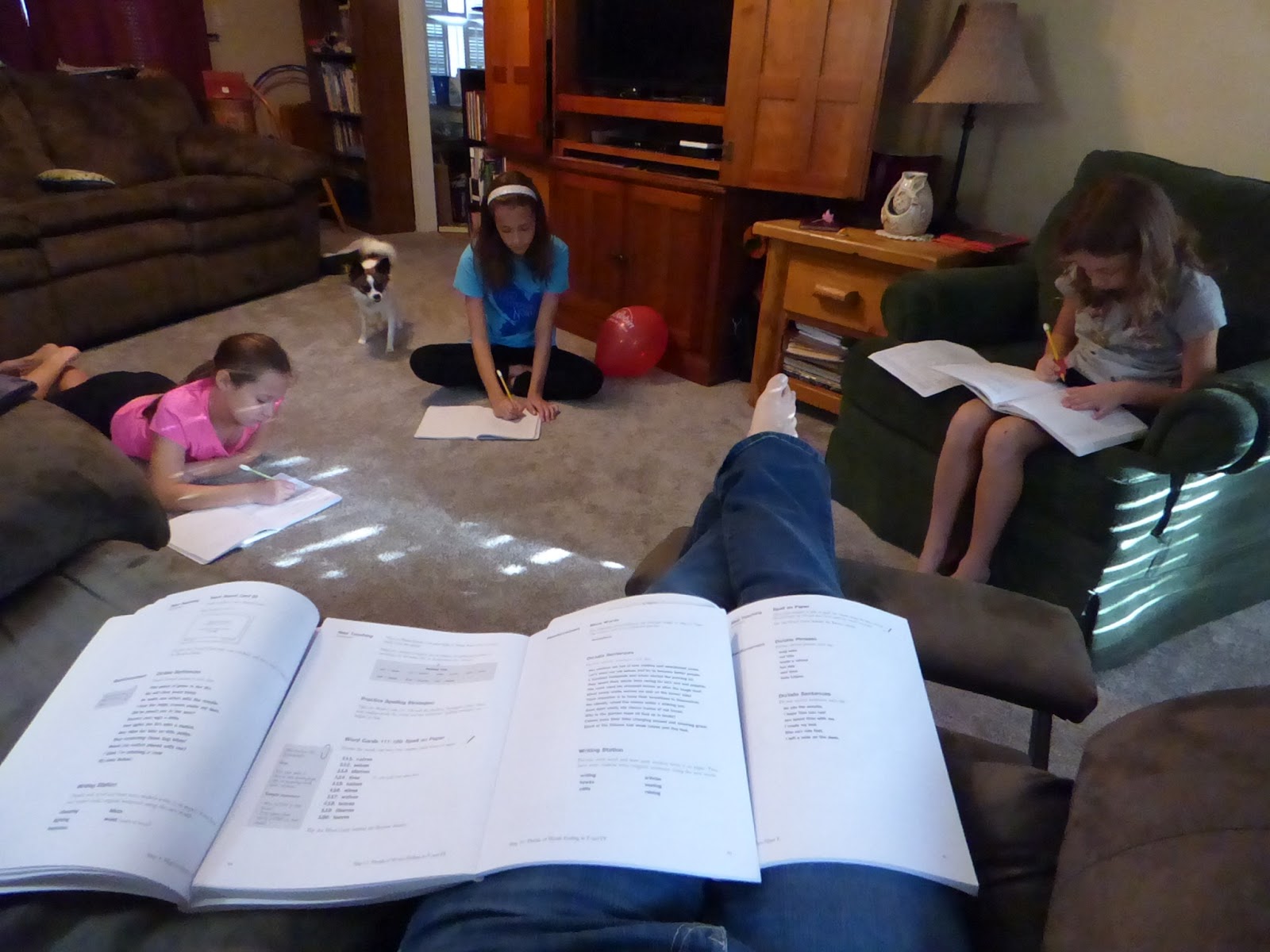 With our new schoolroom setup I work with the girls in the living room or the kitchen. This is working really well and we have even done his with spelling! We still love All About Spelling and picked back up with it this week. I did the lesson with the girls individually then I dictated their words to them all together. We’ve been doing it this way for a couple of years and I have them trained pretty well to cue me to repeat a word and let me know when they are ready for the next one all with silent indicators.
