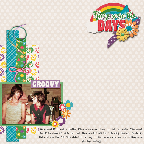 I’ve slowly been scanning and restoring family photos of my and my husband’s families. I decided to do a little family history scrapbooking this week! One of the really fun things about digi scrapping is I’m working on maybe 4-5 albums at once. If I’m not inspired by one thing, I can jump to something different without any trouble!
