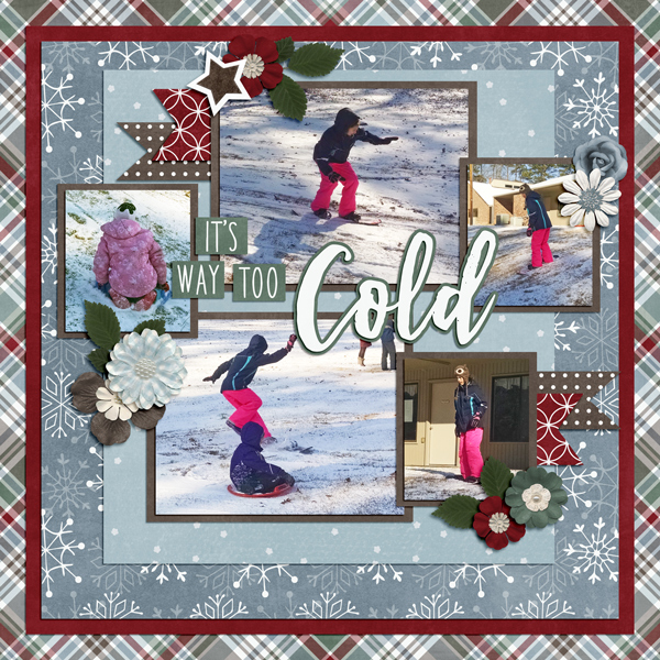 In between handing out doses of medicine, rolling on essential oils, and pouring glass upon glass of juice, I did a little scrapbooking! I’m enjoying taking some time to scrap photos from my childhood and family history. The snow pictures are from the previous week when we got just a light coating of ice. Enough to enjoy a little sledding/snowboarding for a few hours!