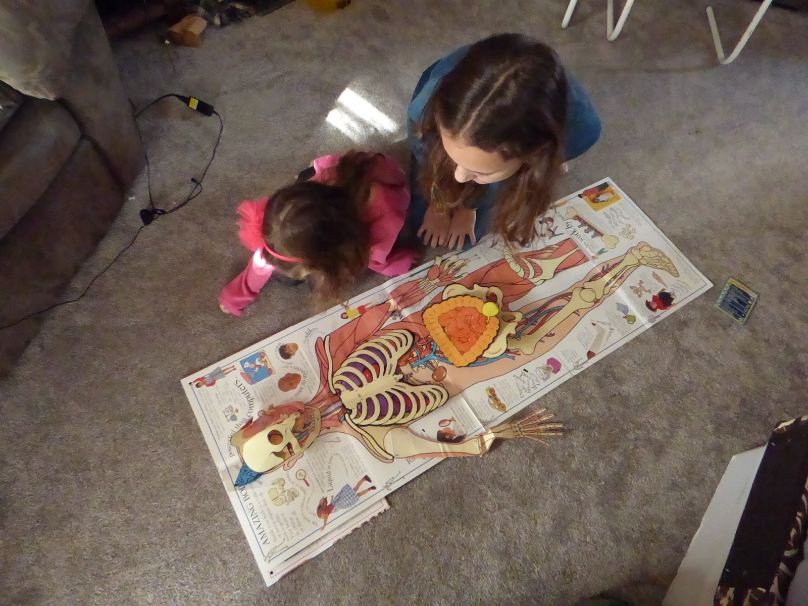 Grace dreams of being a doctor or nurse one day. She waivers between the two because she likes the idea of being a doctor, but knows the nurses are the ones who actually provide the nurturing care and that is what she wants to do. She asked to learn about something that would help her learn about being a doctor. I pulled out some of our “body” books and she had fun learning new facts and the locations of our organs!