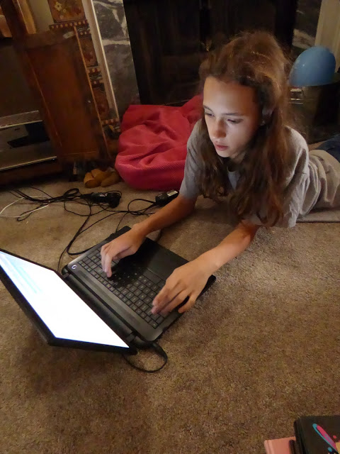 Most of my photos with Rose these days are her working independently. Honestly, this is how homeschooling is working for us right now in middle school. She studies on her own and then we recap together. It’s beautiful really. She is excelling because Heart of Dakota helped me give her the tools she needed to know how to learn instead of merely stuffing facts into her head.