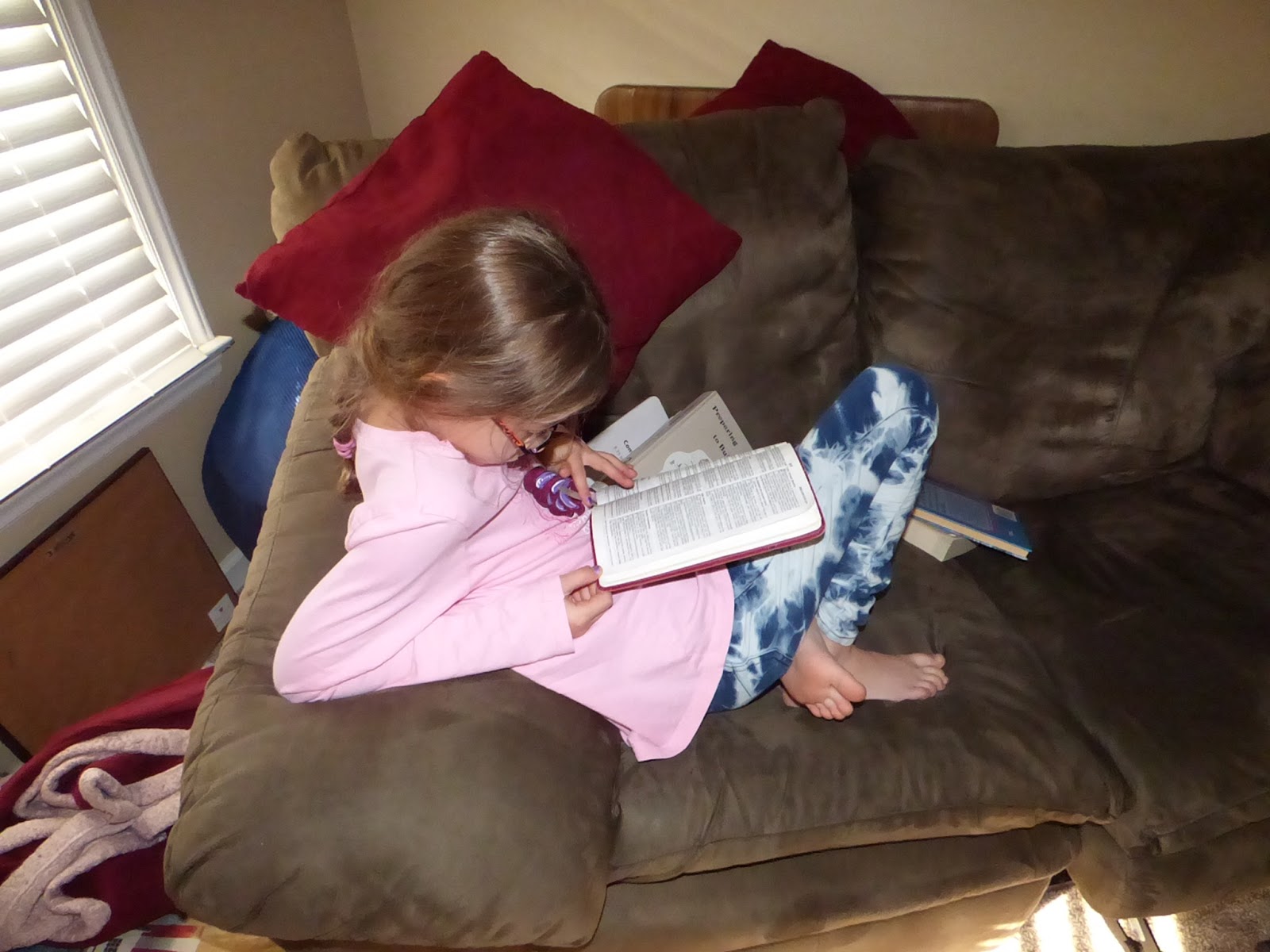 This girl is on the move constantly. The fact that she was studying her weekly memory verse from Proverbs sitting down was a miracle! She’s typically pacing around as she’s working. She’s still getting used to her glasses. They are definitely helping and she really loves them!
