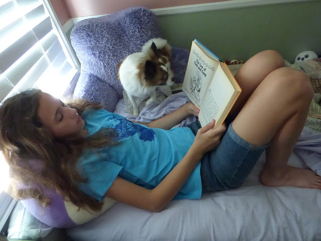 This is the best photo ever! I think Penny was enjoying the book as much as Rose! Rose has a goal of finishing the many abridged classics I have acquired over the years. I really like this way of introducing the girls to classic literature.