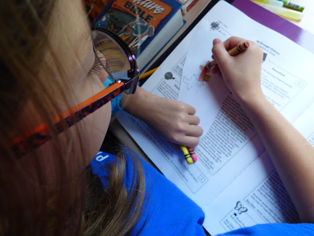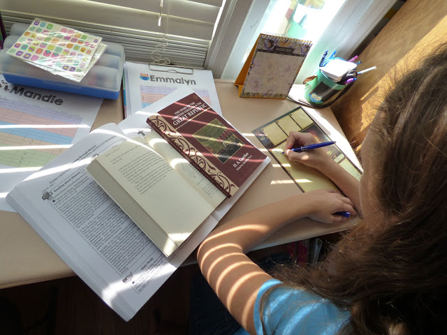 My girls were totally ready to get back to work, but I wasn’t quite there yet. We started school, but I didn’t have all of my ducks in a row. They did a lot of work. I spent a lot of time trying to figure out why my printer wasn’t working right! I have to say, I’m hugely impressed with Epson customer service. The error indicated a hardware issue which I found out after an hour of unplugging, re-plugging, holding down buttons for specified times, doing a little dance, holding my breath while I stood on one foot…etc. It took a simple phone call with a really nice gal to get a new printer sent! It definitely put a kink in our week since I wasn’t fully all set to go. Anyway, here are a few pics…