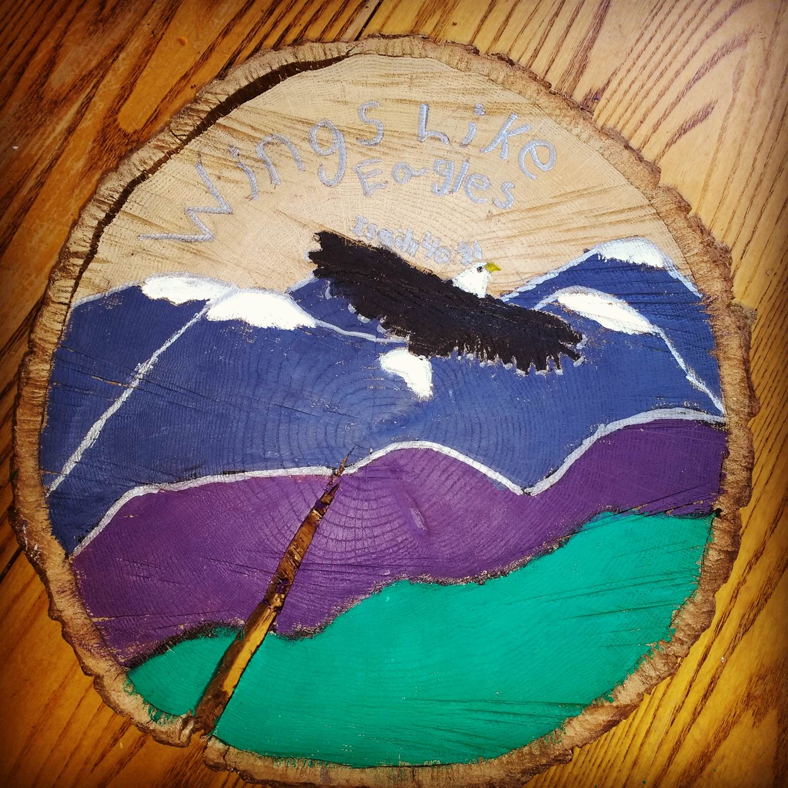 My daughters were also feeling creative with lots of coloring, painting, and drawing. Here are some pieces my 13-year-old completed on slices of a tree trunk!