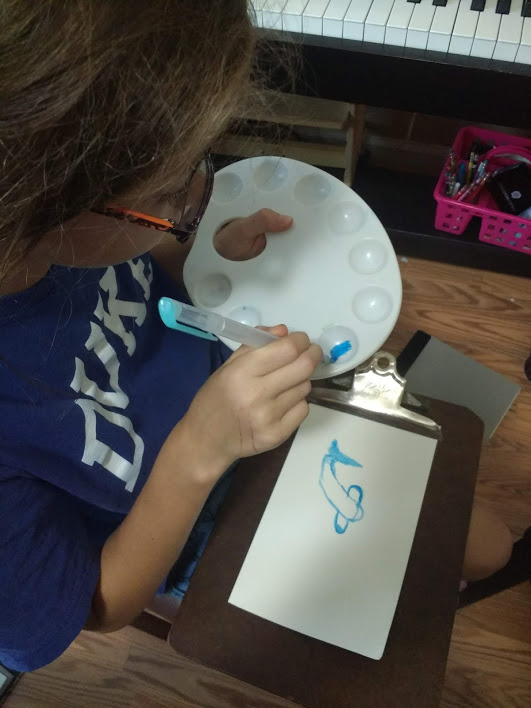 Grace and I sat down to have a little art session! I had fun painting a whale shark and she a hammerhead shark.