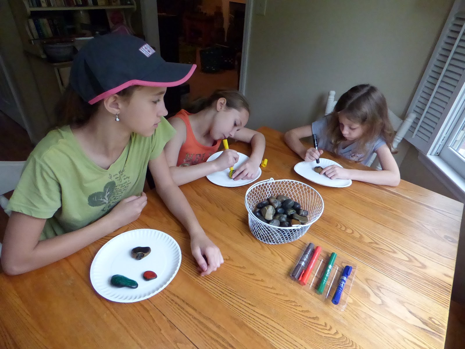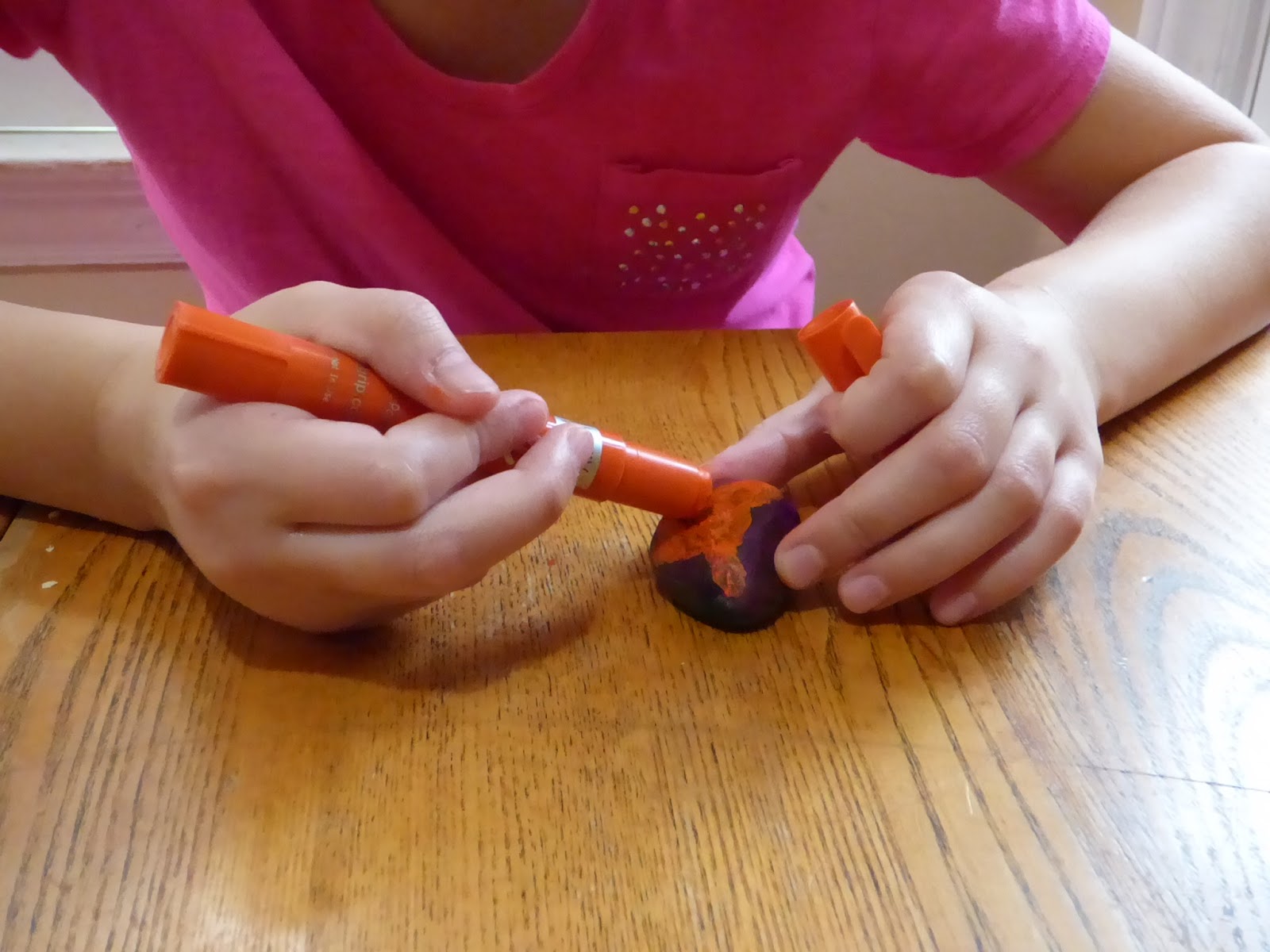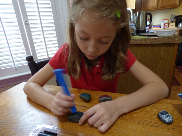 Grace liked to put lots of layers on her rocks. These this was really good for her style of creativity. are perfect for that because they dry so quickly.You can see she was working on 3-4 rocks at the same time. This is perfect for her personality since she tends to jump from one thing to the next and not having to wait long kept her occupied longer.