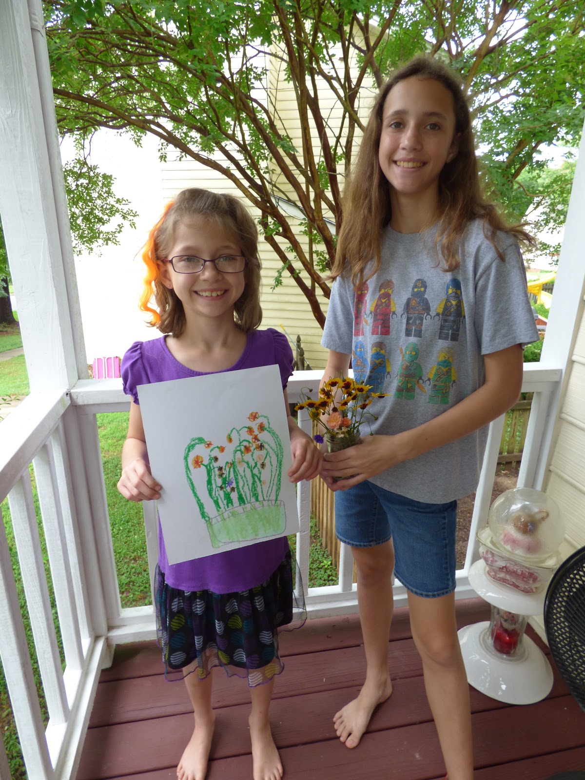 Here are our finished art pieces! I ended up using watercolor pencils and then painting with water on top. Grace just used straight water colors and then added a fun background!