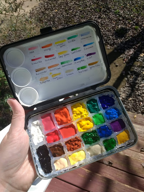 So my latest idea comes from my desire to pursue my long forgotten love of drawing. I want to learn more about watercolor, especially with regards to painting nature. So I got it in my head a few weeks ago how great a little portable palette set would be. So off I went searching and scouring. Trying to find cheap, but questioning if they were any good. Then I stumbled upon “do it yourself” palettes. I found one I liked and off I went!