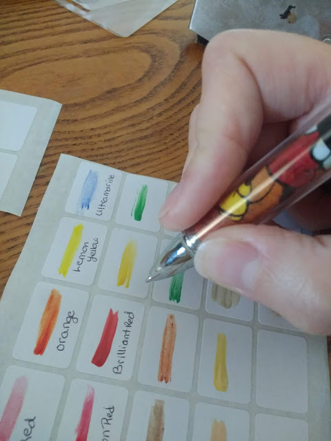 Next I made little labels identifying the colors of my palette so I know what they look like and their names.