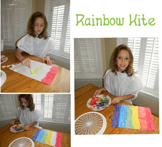 Rose’s project this week is still in progress. We’ve been studying Benjamin Franklin and several of his experiments, including the famous kite experiment. After I made 2 inch strips on her painting paper she created a rainbow colored kite by mixing primary colors. It turned out beautifully!