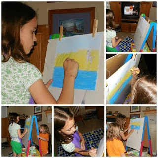 Our art projects went really well this week. Really, really well! I guess my assessment that doing more art projects would be good for my girls even if it isn’t something I’m very good at! This week they all three waited patiently while I prepared the projects, gave individual directions, and took pictures. They all three had a good time as well!