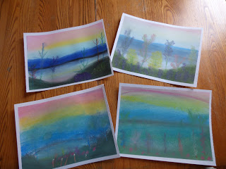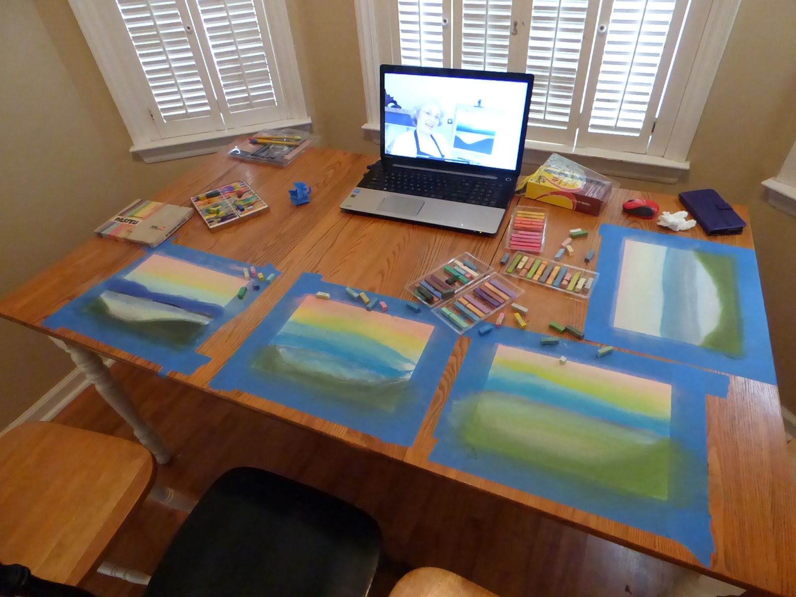 Order: Rose (11), Beth (9), Grace (7) One of the other projects we worked on was a chalk pastel painting. I joined in for this project and learned so very much! For instance, I did not realize that chalk pastels contain no actual chalk, but are pure paint pigment in a dry form. I have to admit, I struggle with art because I feel inadequate, but my daughters absolutely love when I join in their creativity. I genuinely enjoyed creating this picture. This was a level 1 lesson, so it was a bit more detailed.
