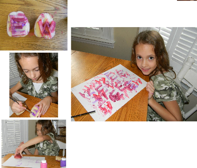 Beth likes to do things her own way. She doesn’t typically like to follow prescribed directions, but today she did fabulous. I once again didn’t have the right supplies, but we modified and had a lot of fun! She colored all the bricks I outlined herself, then filled in the “mortar” (made of toothpaste and glue). I used an icing bag which ended up being a great choice! It took some time for her to learn to control how it came out, but it was really nice! She also liked that it smelled minty. She did not, however, remember anything about Rahab from our week’s lessons. The spies? Total recall. Rahab? Who is Rahab? So it was also a great time to review since that portion didn’t click!