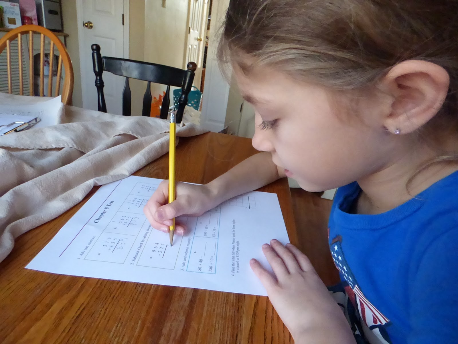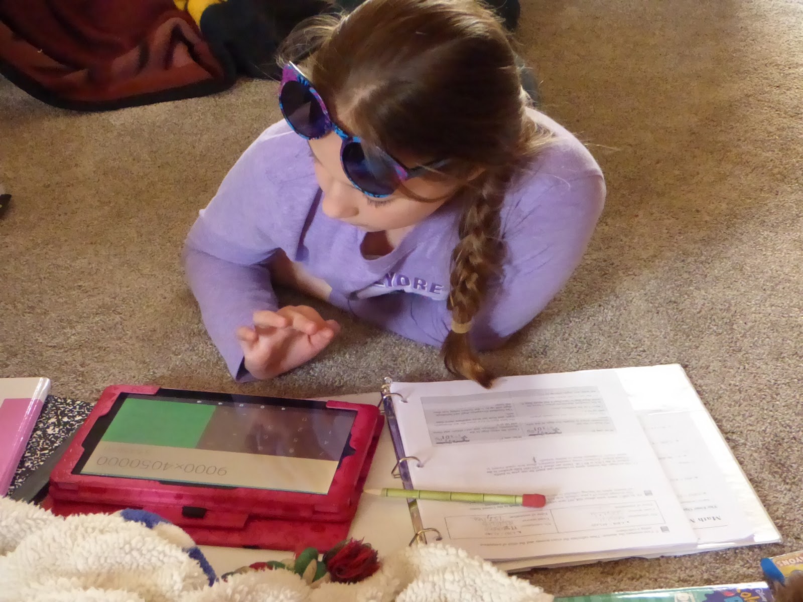 Here is a close-up of that same scene I have at the top. See what a little cropping can do? She’s working on giant numbers and learning how to use a calculator. Our tablets can do so many things!